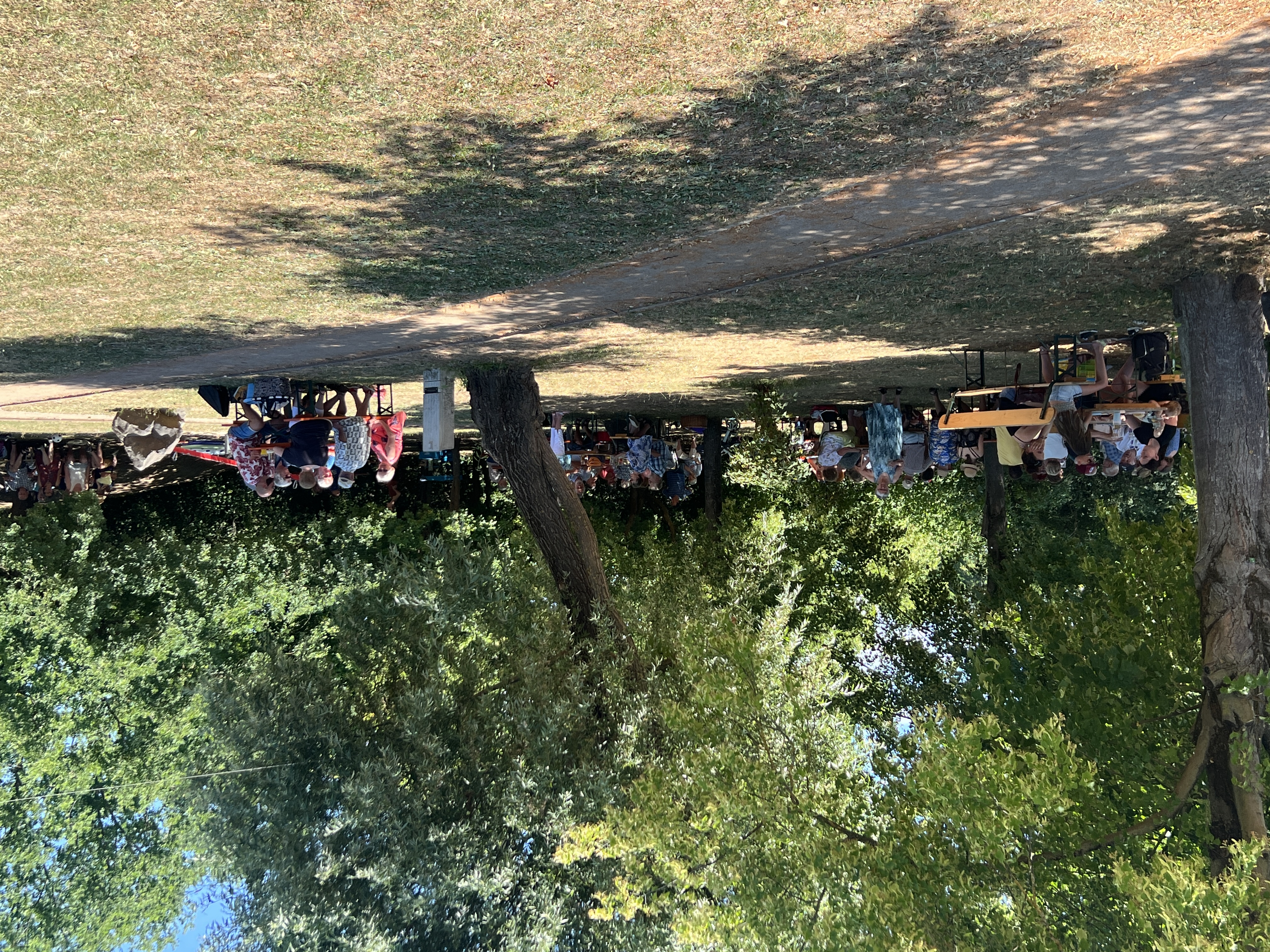 Die Temperaturen stiegen am Sonntag immer höher, und die Tische wurden immer wieder dem Schatten folgend unter den Bäumen verschoben. Auch die Kinder hatten ihren Spaß. In einem aufgestellten Planschbecken wurde fleißig mit Wasser gespielt.