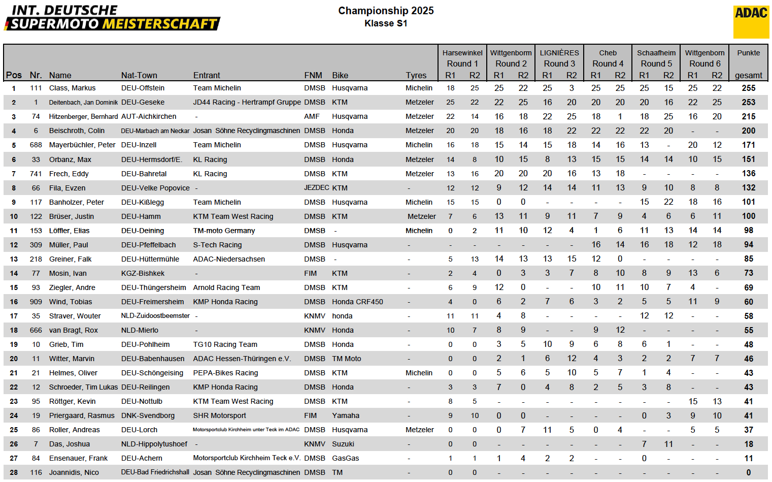 Im großen Finale in Wittgenborn setzte sich Markus auf seiner Husqvarna durch und krönte eine starke Saison: Mit 7 Siegen in 12 Rennen sammelte er 255 Punkte und sicherte sich mit nur 2 Punkten Vorsprung den Titel.