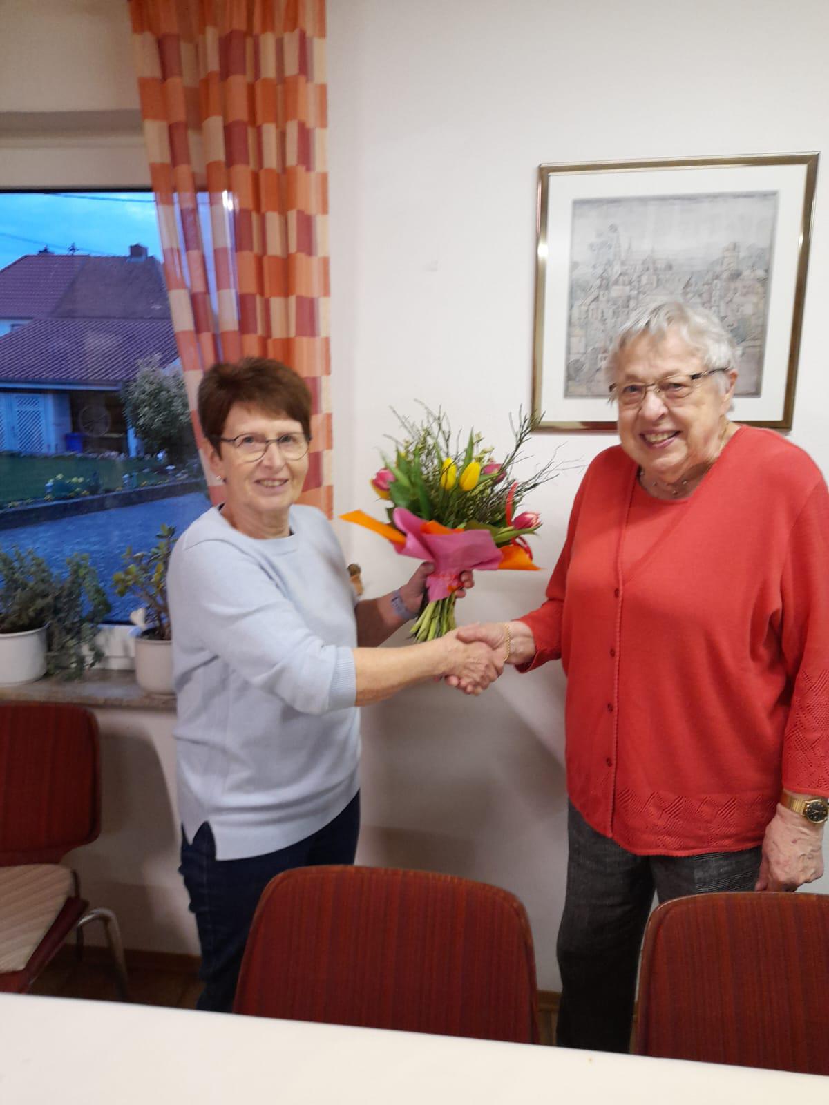 Anschließend wurden die Jubilare würdig gefeiert und mit einem Blumenstrauß geehrt. Beate Wegener für 10 Jahre, Irmtraud Rossner (abwesend) und Gisela Paulitsch für 20 Jahre, Corinna Siemons-Dejung für 30 Jahre und Anni Schäfer für 60 Jahre Mitgliedschaft bei den Offsteiner LandFrauen. Auch die bereits im Laufe des Jahres stattgefundenen Geburtstage wurden in diesem Rahmen noch einmal nachgeholt. Der Vorstand überreichte dazu ein besonderes Geschenk: Für runde und halbrunde Geburtstage wird eine jährlich wechselnde Tasse verschenkt. In diesem Jahr ziert das Offsteiner Rathaus die Tasse – jenes Gebäude, in dem auch die LandFrauen-Küche ihr Zuhause hat.